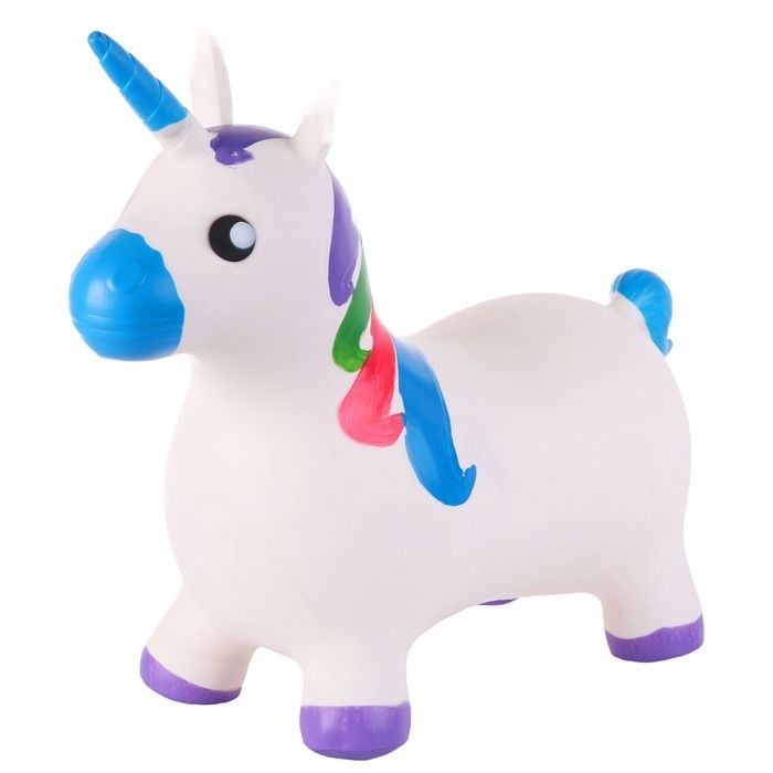 Благодаря пружинящему эффекту игрушка в виде единорога позволяет ребенку перемещаться по комнате верхом. Спинка сказочного животного выполняет роль сиденья, а ушки используются вместо рукояток. Упругая резиновая поверхность легко отмывается. Игрушка-попрыгун улучшает настроение, помогает укрепить мышцы и развить вестибулярный аппарат. Изделие выдерживает нагрузки до 60 кг, может заменить стульчик.