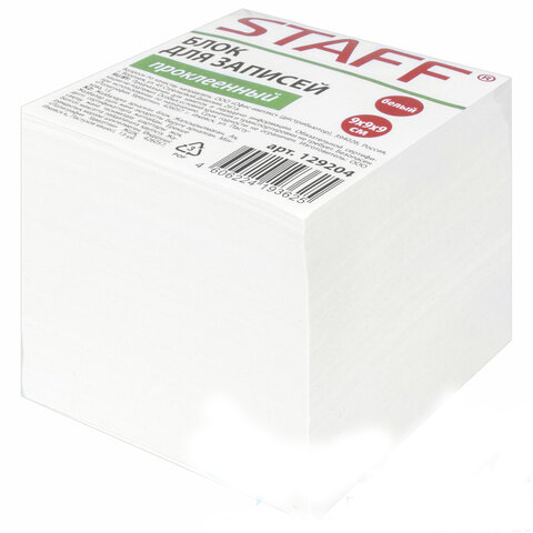 Блок для записей STAFF проклеенный, куб 9х9х9 см, белый, белизна 90-92%, 129204