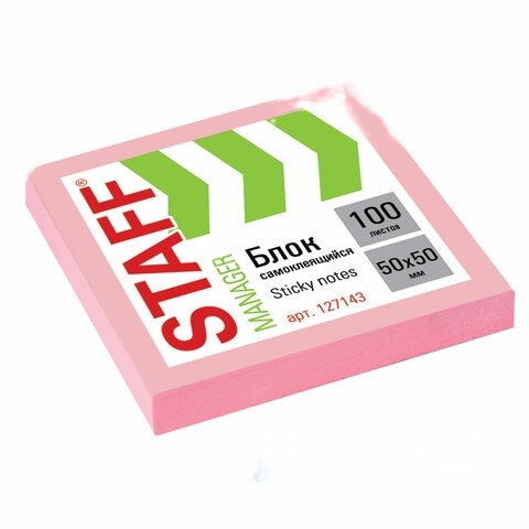 Блок самоклеящийся (стикеры) STAFF, 50х50 мм, 100 листов, розовый, 127143