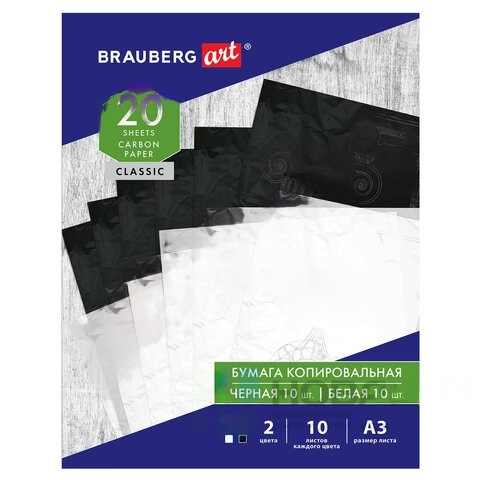 Бумага копировальная (копирка) А3, 2 цвета по 10 листов (черная, белая), BRAUBERG ART, 113855