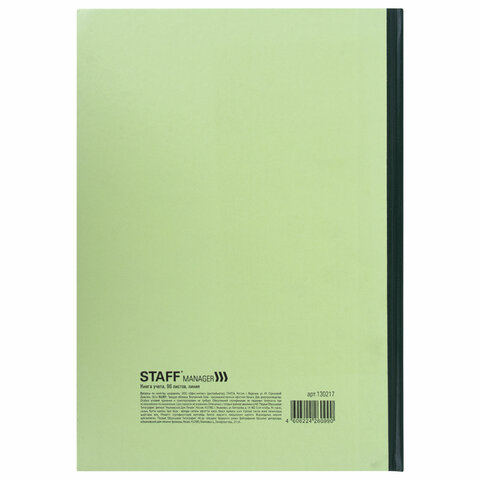 Книга учета 96 л., линия, твердая, типографский блок, А4 (200х290 мм), STAFF, 130217
