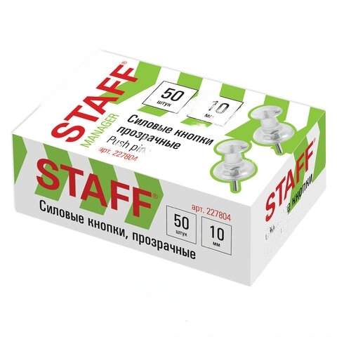Силовые кнопки-гвоздики прозрачные STAFF "Manager", 50 шт., в картонной коробке, 227804