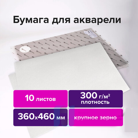 Бумага для акварели 300 г/м2 360x460 мм крупное зерно, 10 листов, BRAUBERG ART PREMIERE, 113229