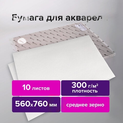 Бумага для акварели 300 г/м2 560x760 мм среднее зерно, 10 листов, BRAUBERG ART PREMIERE, 113238