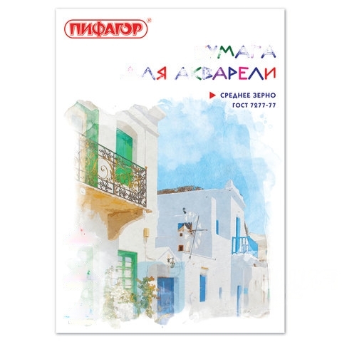 Папка для акварели А4, 20 л., 180 г/м2, ПИФАГОР, 210х297 мм, ГОСТ 7277-77, 126966