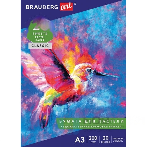 Бумага для пастели БОЛЬШАЯ А3, 20 л., 200г/м2, слоновая кость ГОЗНАК 200 г/м2, тиснение Холст, BRAUBERG ART, 126305