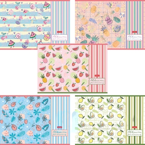 Альбом для рисования А4 24 л., скоба, обложка картон, HATBER, 205х290 мм, "Фруктис", 24А4В