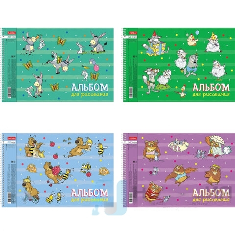 Альбом для рисования А4 40 л., спираль, обложка картон, HATBER, 205х290 мм, "Забавы" (4 вида в спайке), 40А4Всп