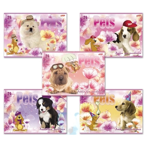 Альбом для рисования, А4, 24 листа, скоба, обложка картон, HATBER, 205х290 мм, "Любимцы", 24А4В, A090770