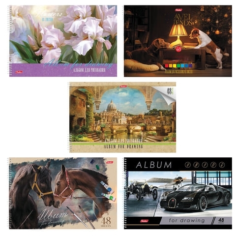 Альбом для рисования, А4, 48 листов, спираль, обложка картон, HATBER, 205х300 мм, "Ассорти", 48А4Всп, A274309
