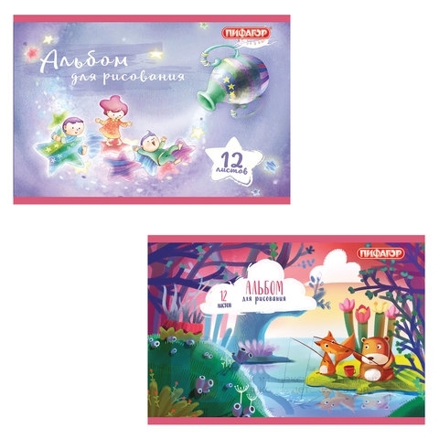 Альбом для рисования А4, 12 л., скоба, обложка офсет, ПИФАГОР, 200х285 мм, "Волшебная страна" (2 вида), 104859