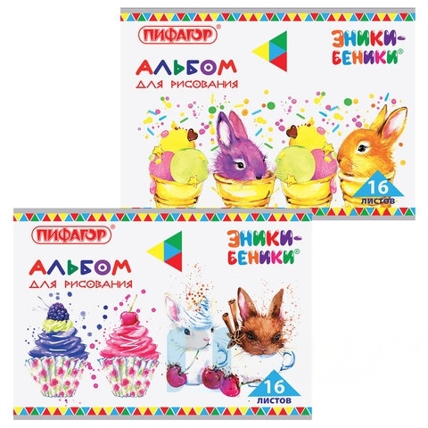 Альбом для рисования, А4, 16 листов, скоба, обложка офсет, ПИФАГОР, 205х290 мм, "ЭНИКИ-БЕНИКИ" (2 вида), 105046