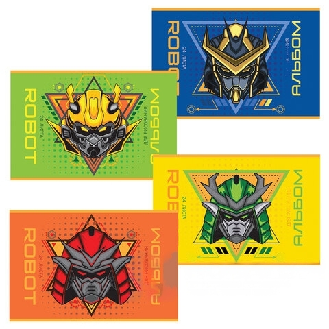 Альбом для рисования, А4, 24 л., скоба, выборочный лак, ПЗБМ, 205х295 мм, "Роботы" (4 вида), 049500