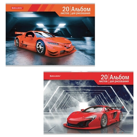 Альбом для рисования А4 20 л., скоба, обложка картон, BRAUBERG, 202х285 мм, "Автомир" (2 вида), 105604