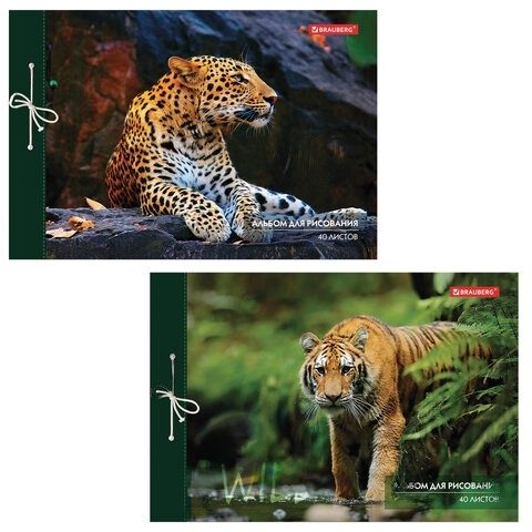 Альбом для рисования А4 40 л., на завязках, обложка картон, BRAUBERG, 200х285 мм, "Дикие кошки" (2 вида), 105615