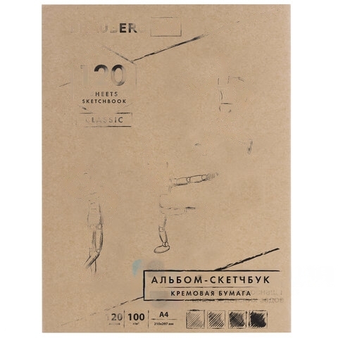 Скетчбук, слоновая кость 100 г/м2, 210х297 мм, 120 л., прошивка, BRAUBERG ART CLASSIC, 128960