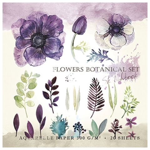 Скетчбук, акварельная белая бумага 300 г/м2, 200х200 мм, 20 л., гребень, SoftTouch, брайль, "Nature", 97286