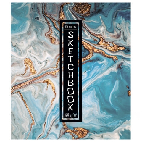 Скетчбук, белая бумага 120 г/м2, 170х195 мм, 60 л., гребень, фольга, выборочный твин лак, "Мрамор", 99464