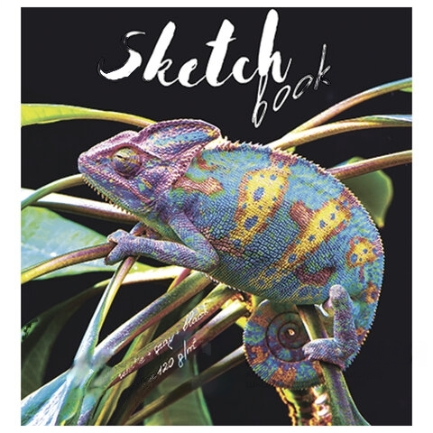 Скетчбук, белая, серая, черная бумага 120 г/м2, 170х195 мм, 45 л., скрепка, фольга, "Хамелеон", 97729