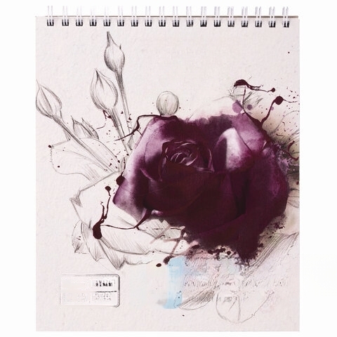 Скетчбук, серая бумага 120 г/м2, 170х195 мм, 30 л., гребень, подложка, цветная фольга, "Роза", 98702