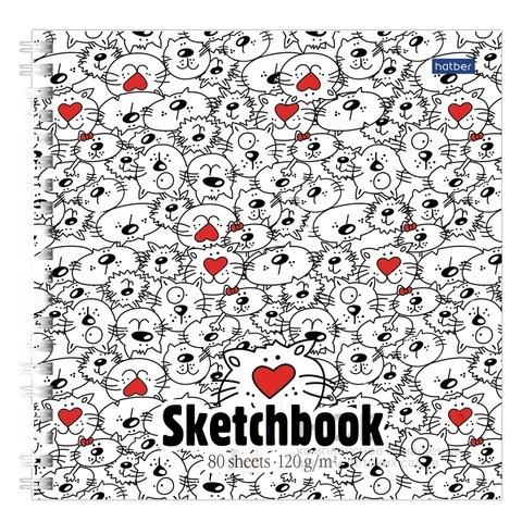 Скетчбук, белая бумага 120 г/м2, 170х170 мм, 80 л., гребень, "Коты", 80Тт5Aгр_17223
