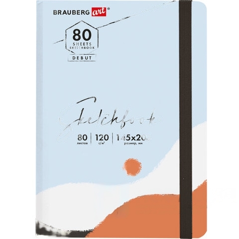 Скетчбук, белая бумага 120 г/м2 145х203 мм, 80 л., резинка, твердый, BRAUBERG ART DEBUT "Дюна", 114586