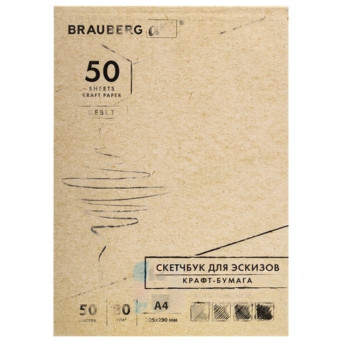 Скетчбук крафт-бумага 80 г/м2, 205х290 мм, 50 л., склейка, жёсткая подложка, BRAUBERG ART DEBUT, 112489
