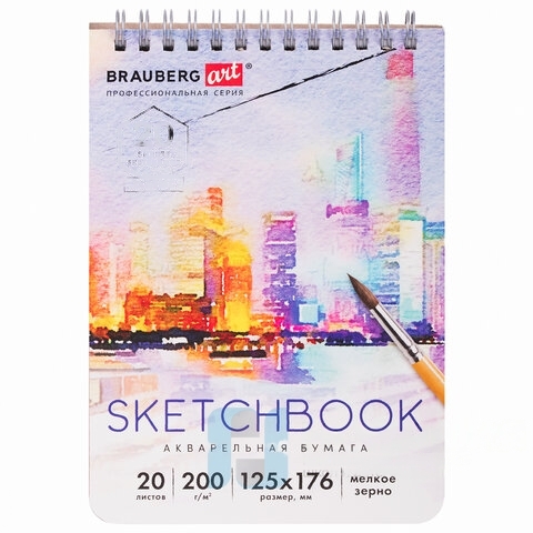 Скетчбук, акварельная бумага 200 г/м2, 125х176 мм, 20 л., гребень, твердая обложка, BRAUBERG ART, 112976