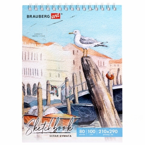 Скетчбук, белая бумага 100 г/м2 210х290 мм, 80 л., гребень, твердая обложка, BRAUBERG ART DEBUT, 112987