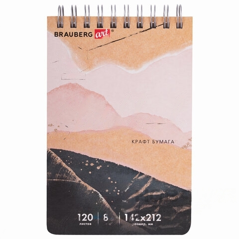 Скетчбук, крафт-бумага 80 г/м2, 142х212 мм, 120 л., гребень, твердая обложка, BRAUBERG ART DEBUT, 112998