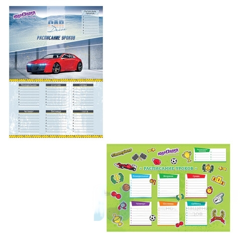 Расписание уроков и звонков А3, ЮНЛАНДИЯ, для мальчиков, ассорти (2 вида), 111653