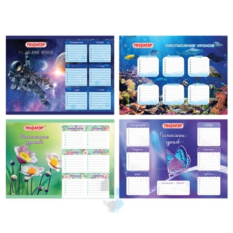 Расписание уроков и звонков А4, ПИФАГОР, "Окружающий мир", ассорти (4 вида), бумага 150 г/м2, 111659
