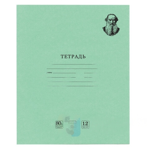 Тетрадь ВЕЛИКИЕ ИМЕНА. Толстой Л.Н., 12 л. частая косая линия, плотная бумага 80 г/м2, обложка тонированный офсет, BRAUBERG, 105719