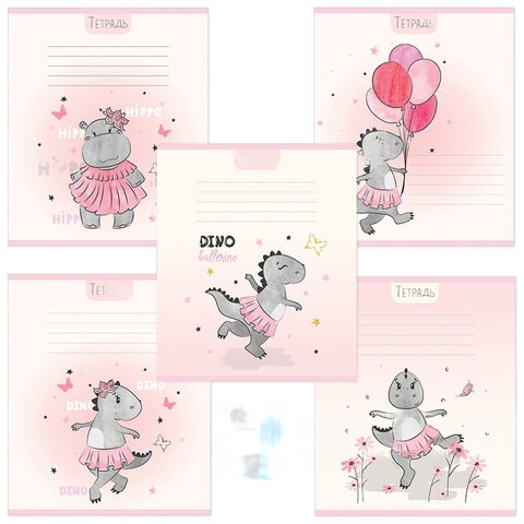 Тетрадь 12 л. ПЗБМ, клетка, блестки, "Дино-балерино", 019935, 19395
