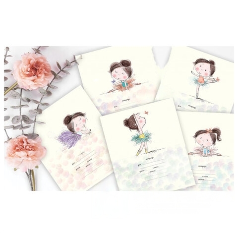 Тетрадь 12 л. ПЗБМ клетка, блестки, "Маленькие Балеринки" (5 видов), 017088