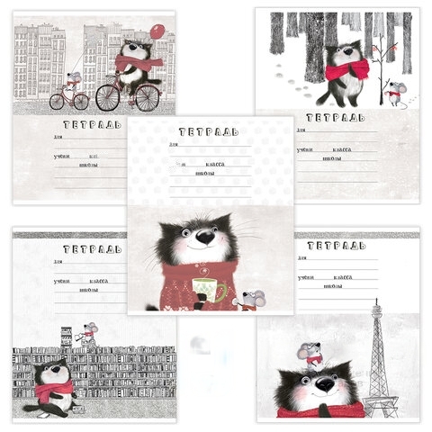 Тетрадь 18 л. ПЗБМ клетка, выборочный лак, "КОТ МАТИС" (5 видов), 019259