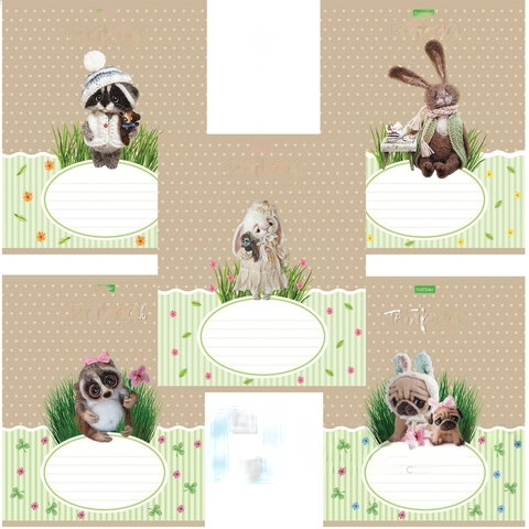Тетрадь 12 л. HATBER-ECO, клетка, обложка плотная мелованная бумага, "Пушистые зверушки", 12Т5C1