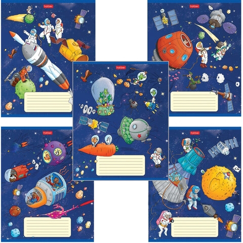 Тетрадь 18 л. HATBER клетка, обложка картон, "Космическое приключение" (5 видов в спайке),18Т5В1