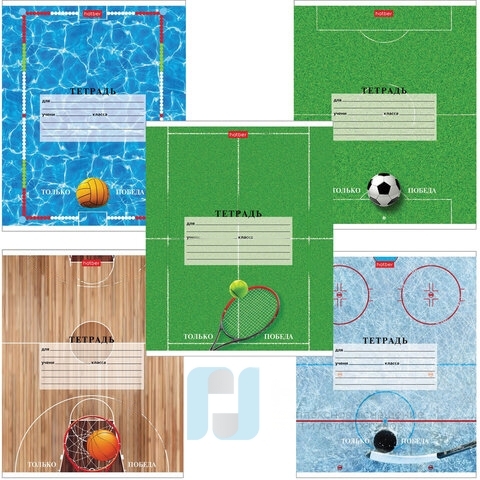 Тетрадь 18 л. HATBER клетка, обложка картон, "Спорт Клуб" (5 видов в спайке), 18Т5В1