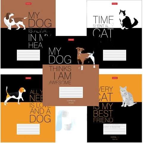 Тетрадь 18 л. HATBER клетка, обложка картон, "Умные звери" (5 видов в спайке), 18Т5В1