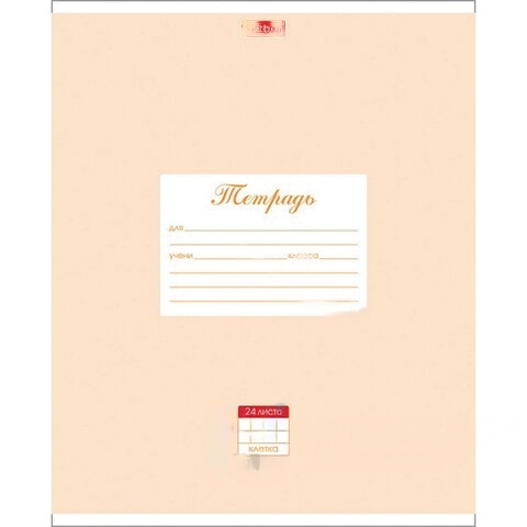 Тетрадь 24 л. HATBER клетка, обложка картон, "Пастель-Персиковая", 24Т5В1_05145
