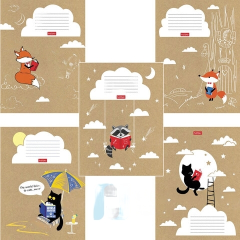 Тетрадь 18 л., HATBER, клетка, обложка картон, "Забавные читатели" (5 видов в спайке), 18Т5В1