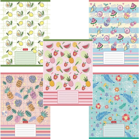 Тетрадь 18 л., HATBER, клетка, обложка картон, "Фруктис" (5 видов в спайке), 18Т5В1