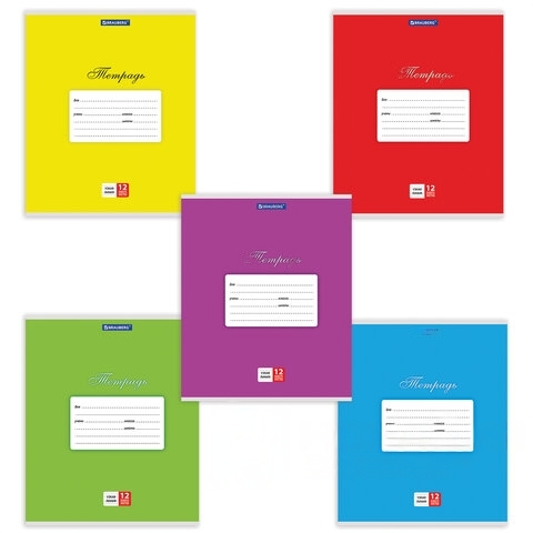 Тетрадь 12 л. BRAUBERG КЛАССИКА, узкая линия, обложка картон, АССОРТИ (5 видов), 103277