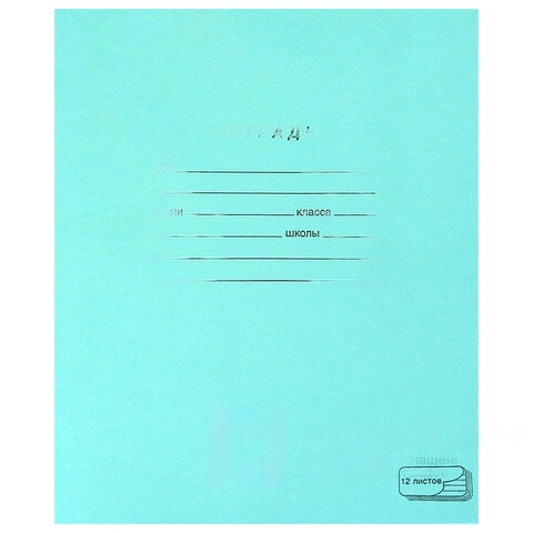 Тетрадь ЗЕЛЁНАЯ обложка 12 л., частая косая линия с полями, офсет, "ПЗБМ", 018244