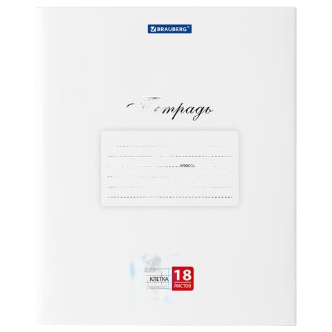 Тетрадь 18 л. BRAUBERG "КЛАССИКА", клетка, обложка картон, БЕЛАЯ, 106475