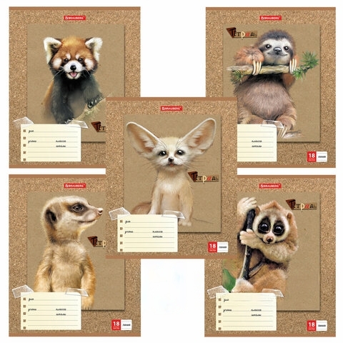 Тетрадь 18 л. BRAUBERG линия, обложка картон, "МИЛЫЕ ЗВЕРУШКИ", 403580