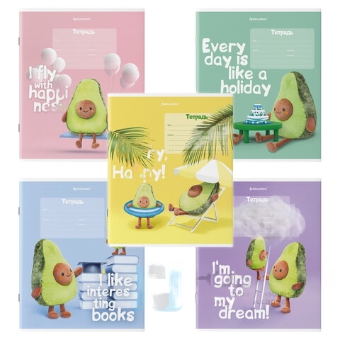 Тетрадь 18 л. BRAUBERG клетка, обложка картон, "ПЛЮШЕВЫЙ АВОКАДО", 106477
