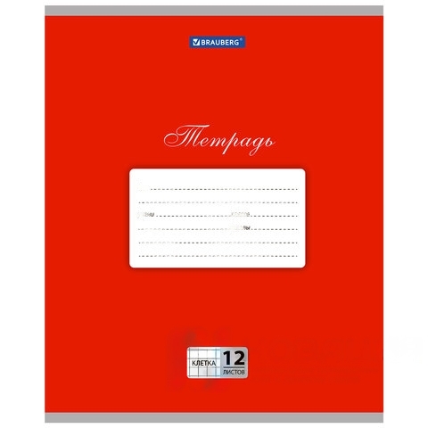 Тетрадь 12 л. BRAUBERG КЛАССИКА, клетка, обложка картон, КРАСНАЯ, 104721