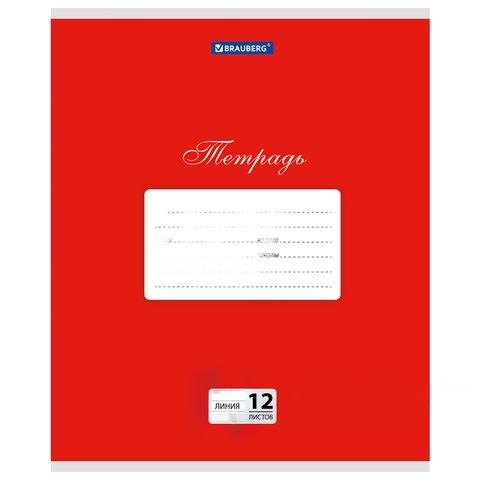 Тетрадь 12 л. BRAUBERG КЛАССИКА, линия, обложка картон, КРАСНАЯ, 104725